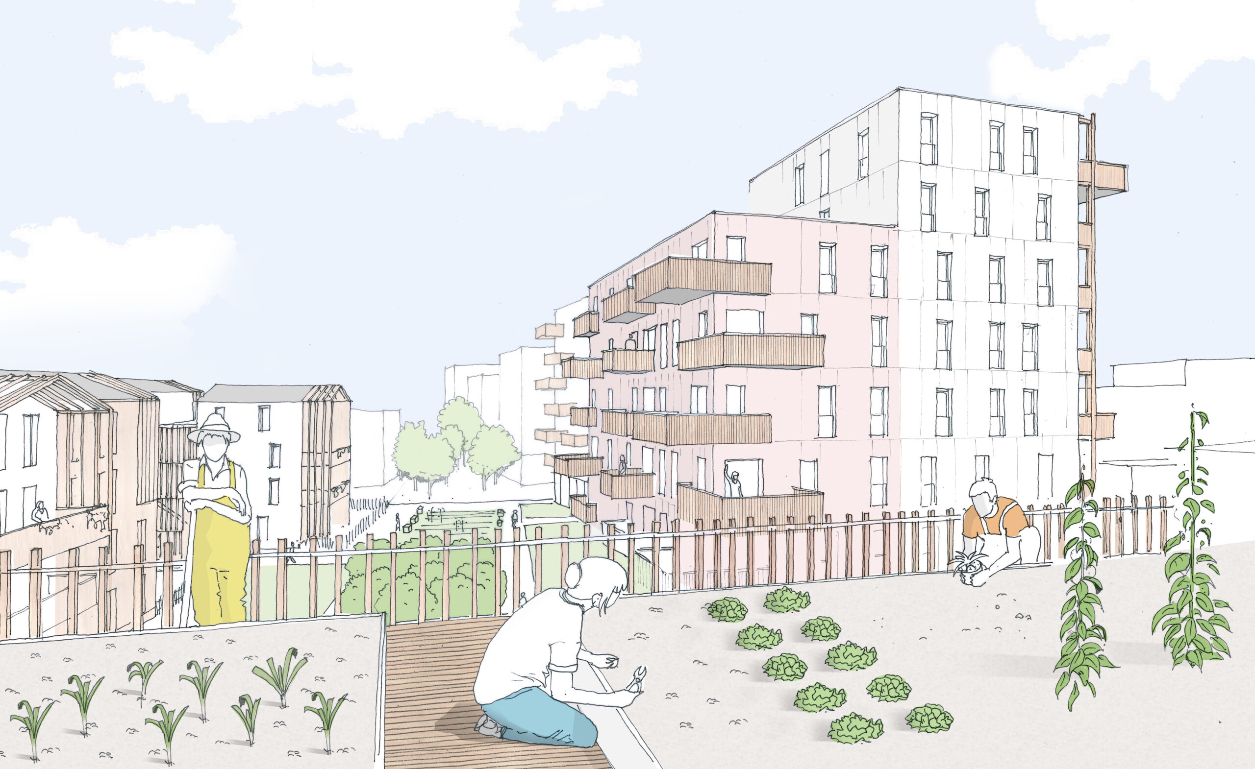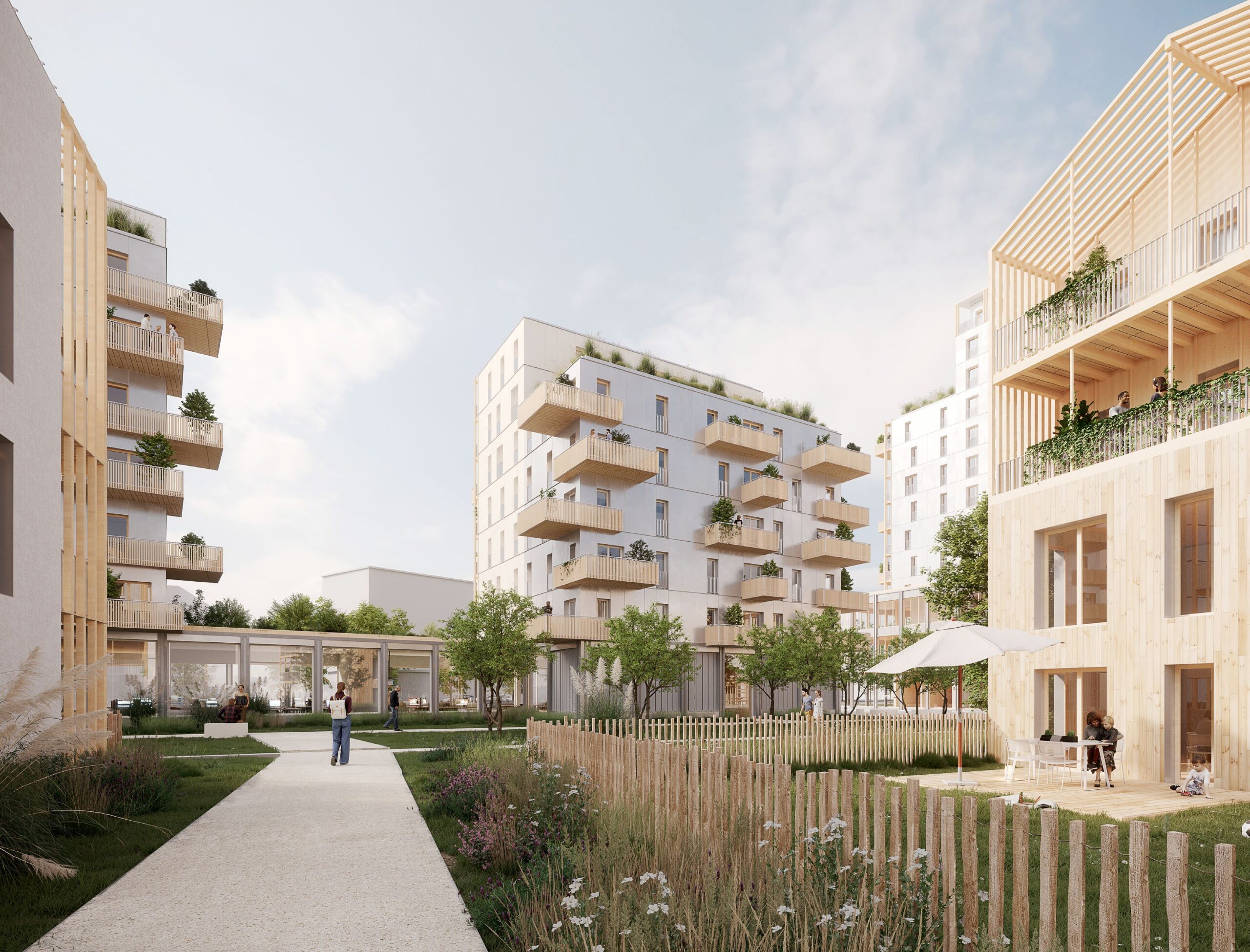 Notre projet a pour objectif d’expérimenter la construction d’un îlot de grande taille, utilisant au maximum les matériaux bois (notamment pour la structure) et biosourcés, avec des niveaux de hauteur peu réalisés en France (jusqu’à R+12), à des niveaux de performance bien au-dessus de la réglementation thermique (objectif BEPOS), et à des coûts maitrisés.